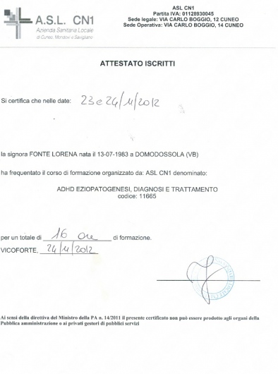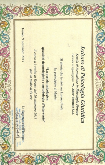 Durante la sua attività ha ampliato la sua preparazione attraverso diversi corsi e master nel settore dell'infanzia, disturbi del comportamento, DSA, nella psicologia forense, e terapia di coppia, e geriatria.