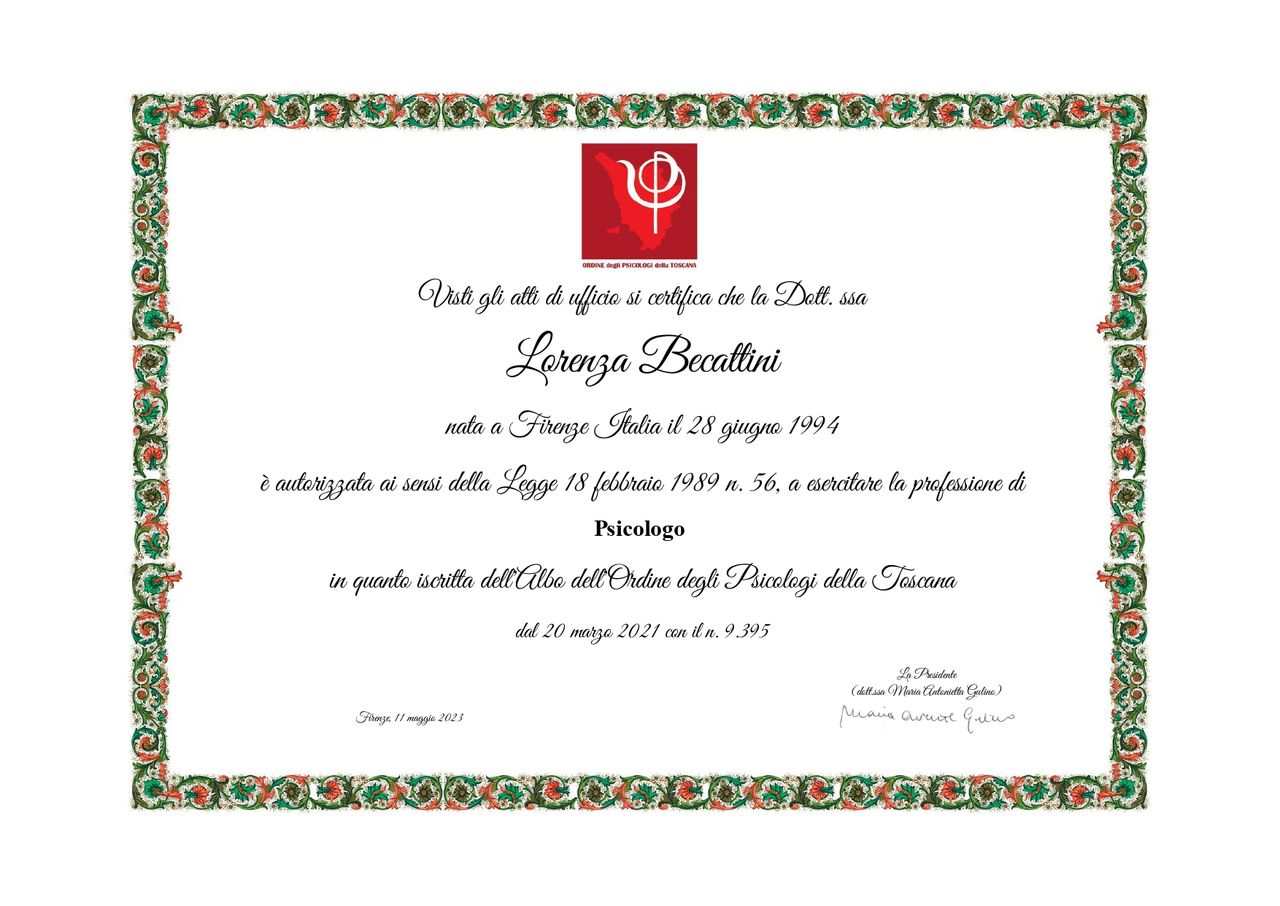 Sono la Dott.ssa Lorenza Becattini, psicologa e psicoterapeuta ad orientamento analitico interpersonale.