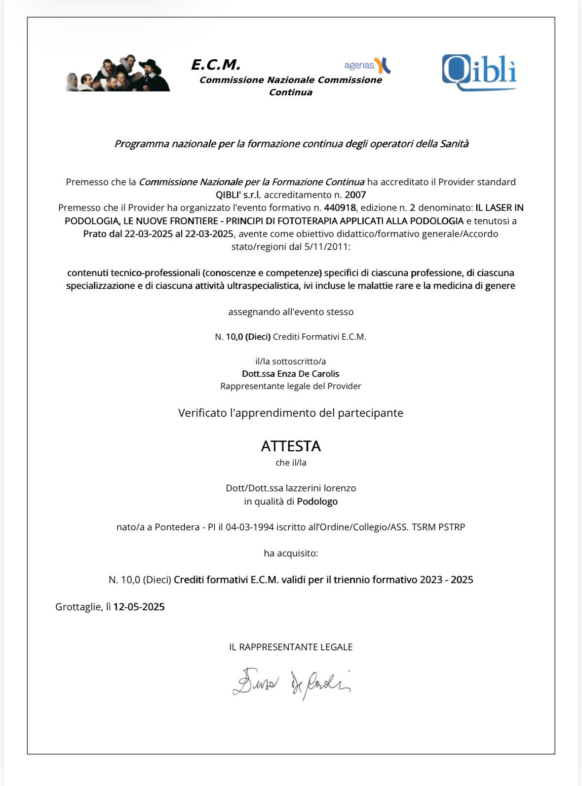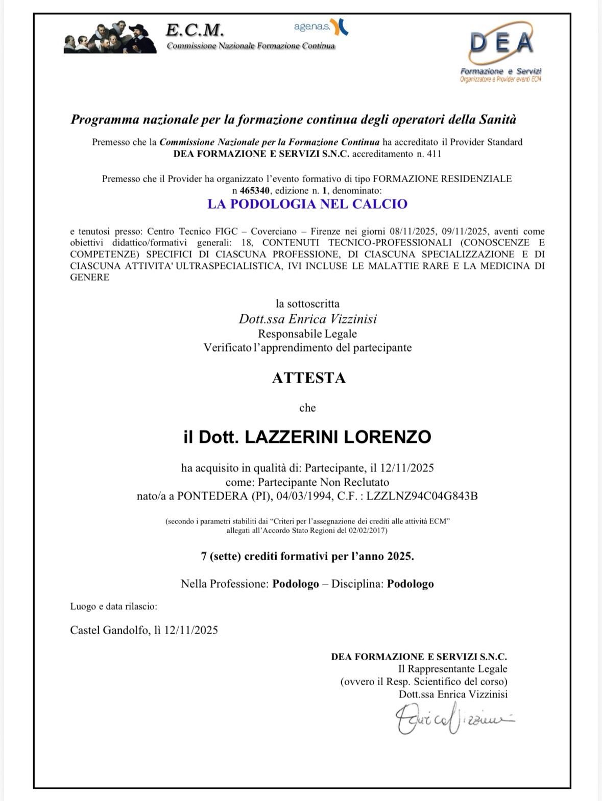Attualmente sto frequentando un Master in Podologia Sportiva WAPS in lingua spagnola, per perfezionare le competenze legate alla cura e prevenzione delle problematiche podologiche in ambito sportivo.
