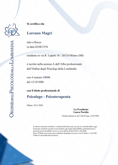 Sono Lorenzo Magri, psicologo e psicoterapeuta.