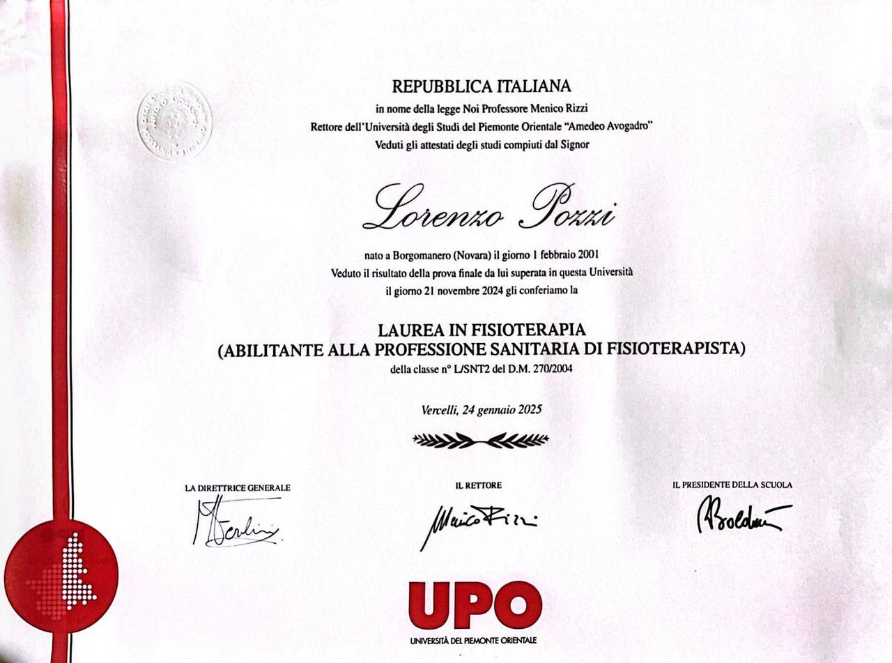 Laureato presso l'Università del Piemonte Orientale nel 2024 con punteggio 110/110.