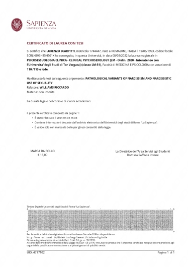 Sono uno psicologo clinico, con specializzazione in psico-sessuologia clinica, attualmente in formazione come psicoterapeuta a indirizzo analitico. La mia attività principale è quella da studio, dove svolgo consulenze, valutazioni, colloqui clinici e percorsi medio-brevi, sia in setting individuale che di coppia. Seguo un approccio integrato, che unisce riferimenti di diversi approcci, con base dinamico-clinica, elementi di sistemica familiare e cognitivismo moderno, il tutto con un focus principale sulla relazione. Ho lavorato molto e lavoro tutt'ora con la neuro divergenza, area dove ho acquisito formazione specifica in tecniche CBT applicate. Da cui viene poi una formazione specifica nel sostegno alla genitorialità, non solo in favore di figliə neurodivergentə, sia a livello di parent training che di sostegno psicologico. Svolgo infine saltuariamente corsi di educazione sessuale rivolti principalmente ad adolescenti e giovani adulti, parent training di gruppo e formazione nell'ambito della neuro divergenza e della sessuologia clinica.
