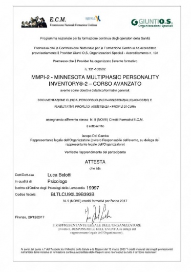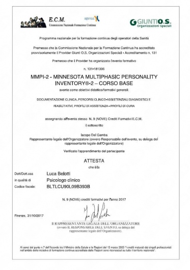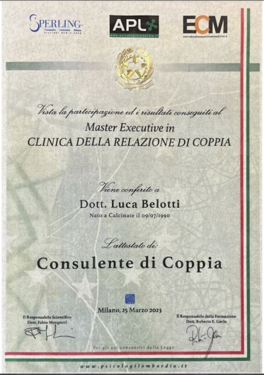 Ho una Laurea in Psicologia Clinica, sono registrato all’Ordine degli Psicologi dal 2017 e ho conseguito il Diploma di Specializzazione in Psicoterapia presso la Società Italiana di Psicoanalisi della Relazione (SIPRe). Da anni collaboro con l'Università degli Studi di Bergamo in qualità di Assistant Professor e di tutor accademico. Ho inoltre lavorato per diversi anni in ambito ospedaliero.
