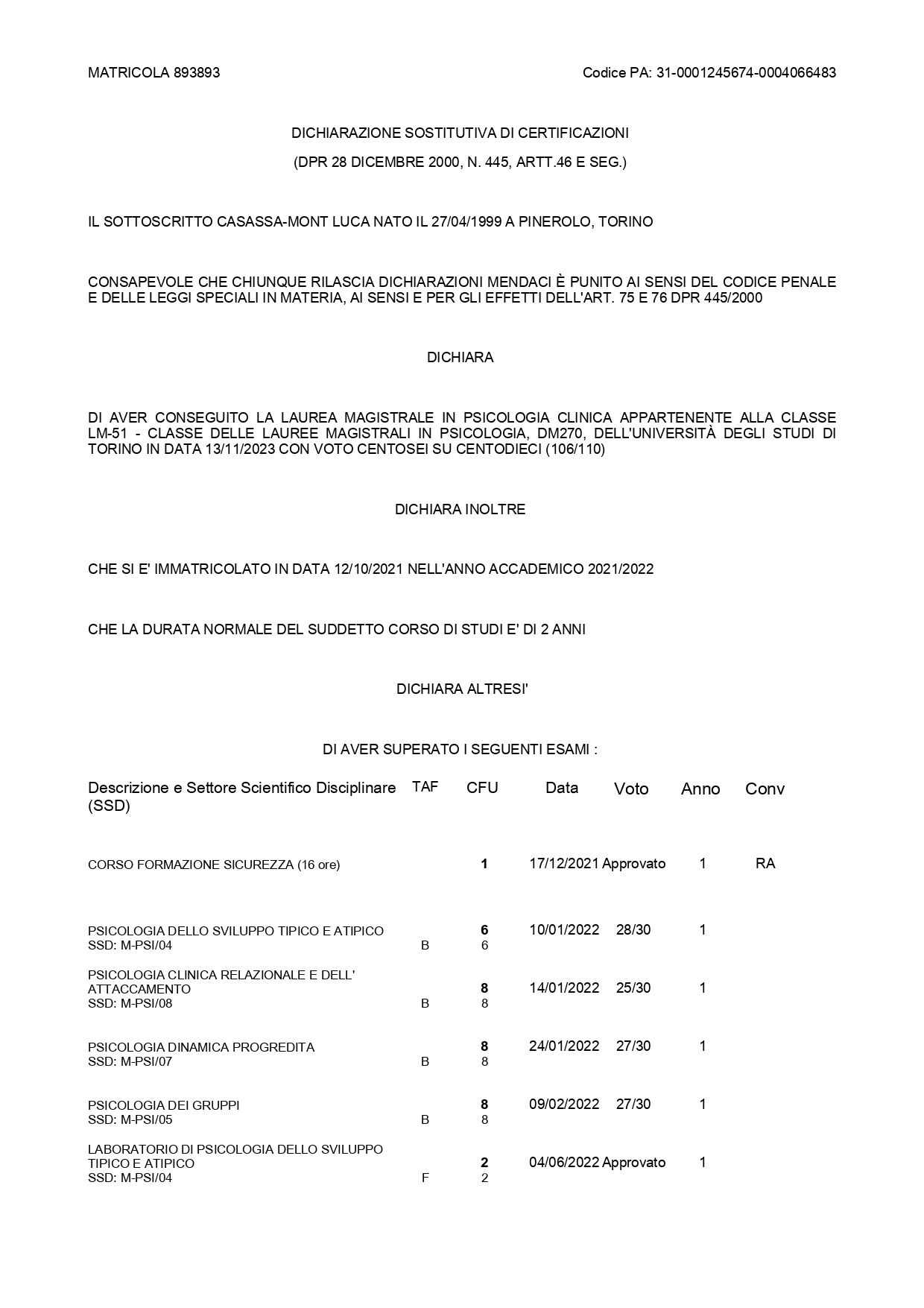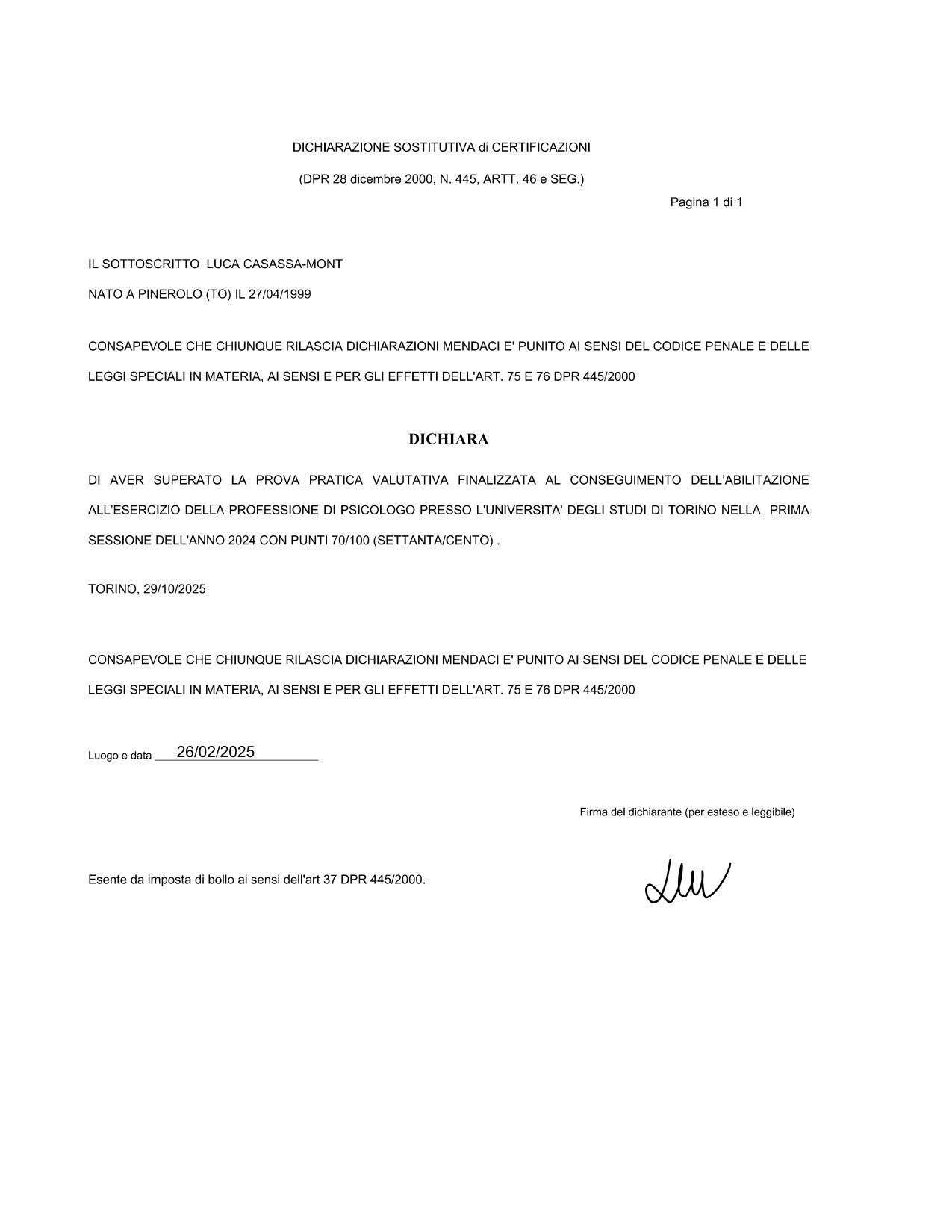 Mi sono rivolta al dottor Casassa per iniziare un percorso di sostegno psicologico ed è stato subito in grado di farmi sentire a mio agio. La sua sensibilità e l’attenzione alle mie esigenze sono gli aspetti che mi hanno colpita di più. Non posso che consigliarlo! Grazie dottore!
