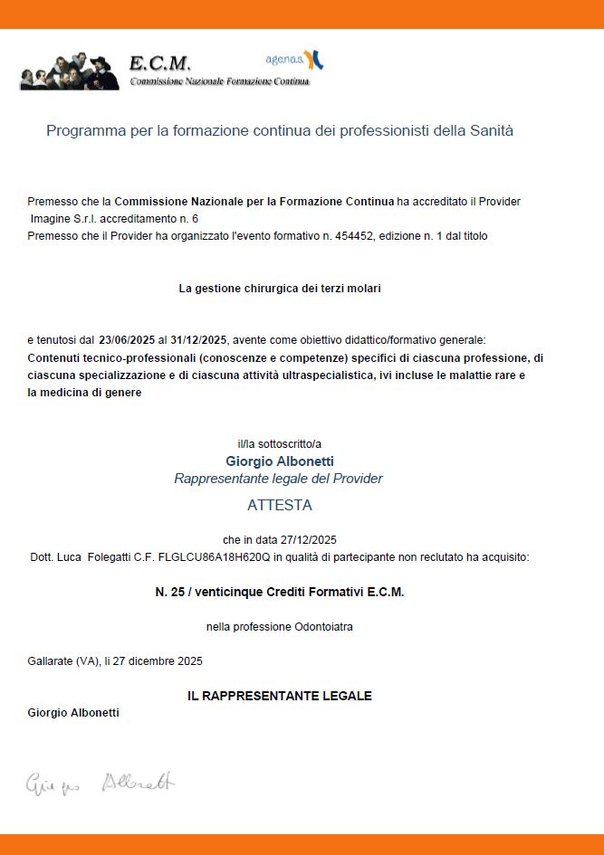 Il Dott. Luca Folegatti è stato eccezionale: professionale, umano e davvero meticoloso. Ha ricostruito il dente con grande precisione e, vista la situazione, ha anche stabilizzato un altro dente con splintaggio, dimostrando enorme attenzione e competenza.