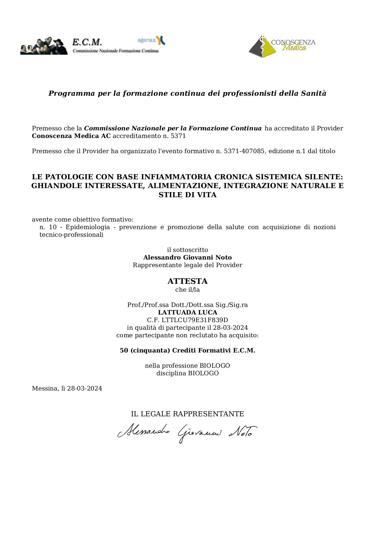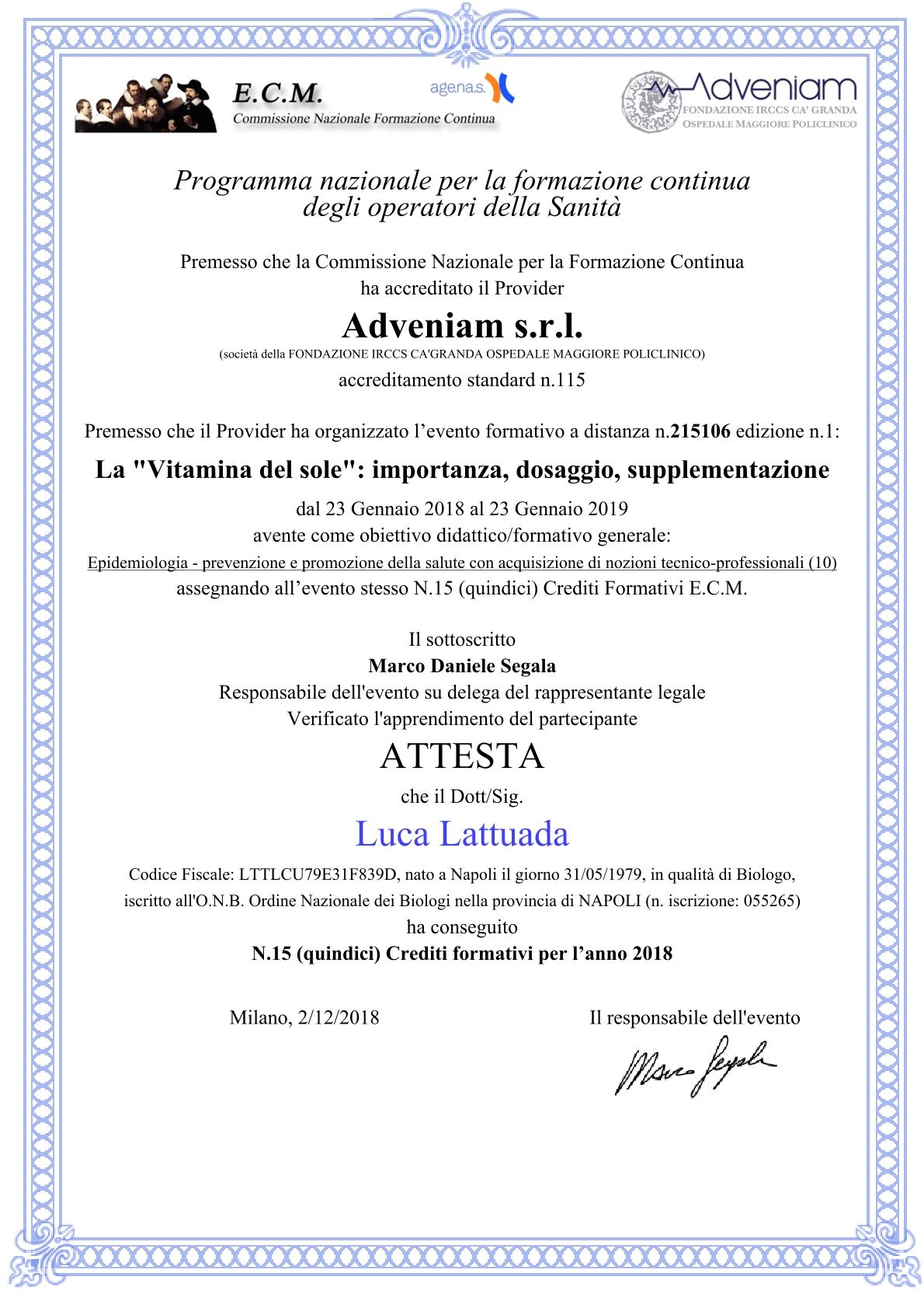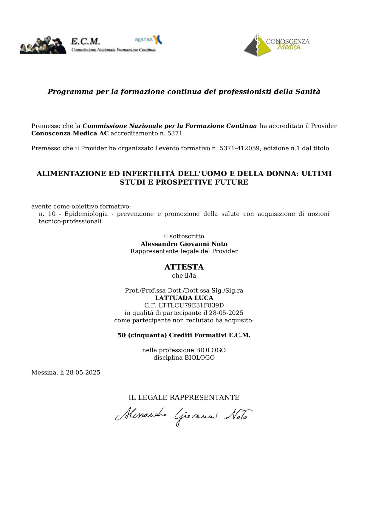 Mi sono rivolta al Dott. Lattuada per migliorare la mia alimentazione e ottenere un piano nutrizionale personalizzato. Fin dal primo incontro, ho apprezzato la sua professionalità, la competenza e l’attenzione ai dettagli. Ha saputo ascoltare le mie esigenze e creare un percorso equilibrato e sostenibile, senza diete drastiche o rinunce inutili. Grazie ai suoi consigli, dopo sole 2 settimane ho giá raggiunto ottimi risultati, sentendomi più energica e in forma. Inoltre, è sempre disponibile per chiarimenti e motivazione lungo il percorso. Consiglio vivamente il suo supporto a chiunque voglia prendersi cura della propria salute in modo efficace e consapevole!