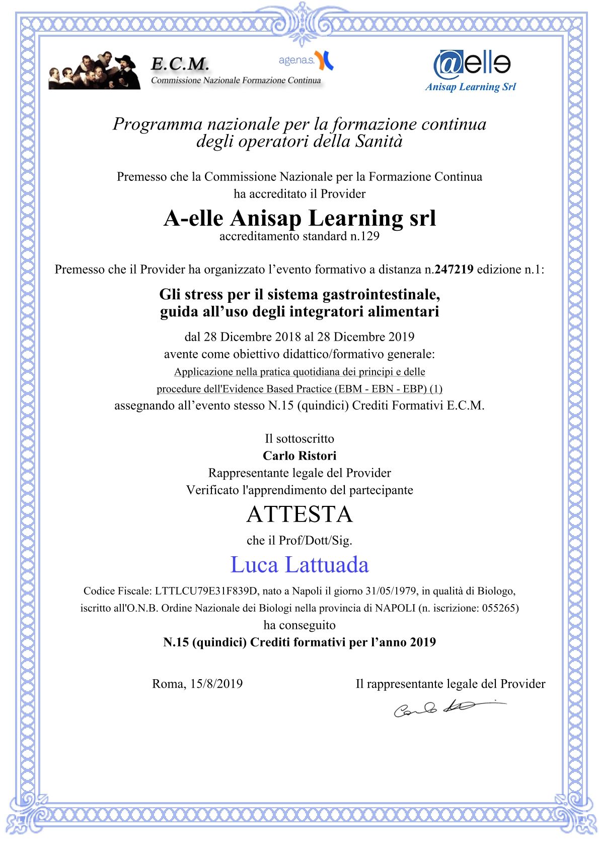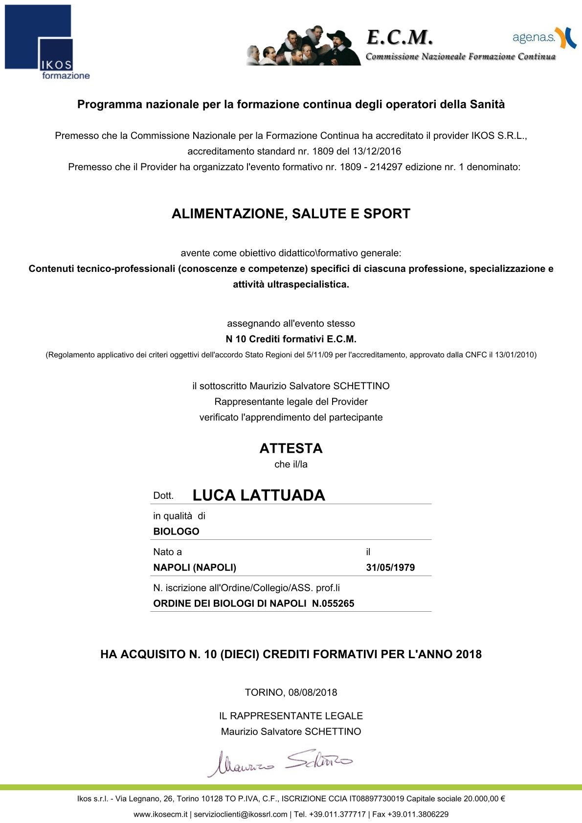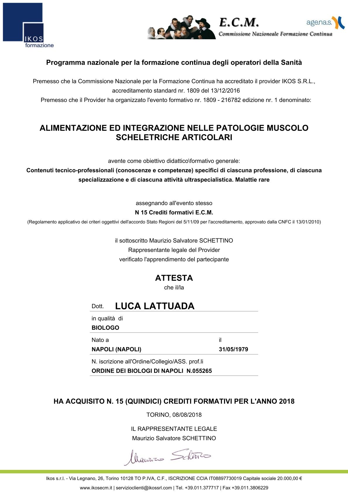 Mi sono rivolta al Dott. Lattuada per migliorare la mia alimentazione e ottenere un piano nutrizionale personalizzato. Fin dal primo incontro, ho apprezzato la sua professionalità, la competenza e l’attenzione ai dettagli. Ha saputo ascoltare le mie esigenze e creare un percorso equilibrato e sostenibile, senza diete drastiche o rinunce inutili. Grazie ai suoi consigli, dopo sole 2 settimane ho giá raggiunto ottimi risultati, sentendomi più energica e in forma. Inoltre, è sempre disponibile per chiarimenti e motivazione lungo il percorso. Consiglio vivamente il suo supporto a chiunque voglia prendersi cura della propria salute in modo efficace e consapevole!