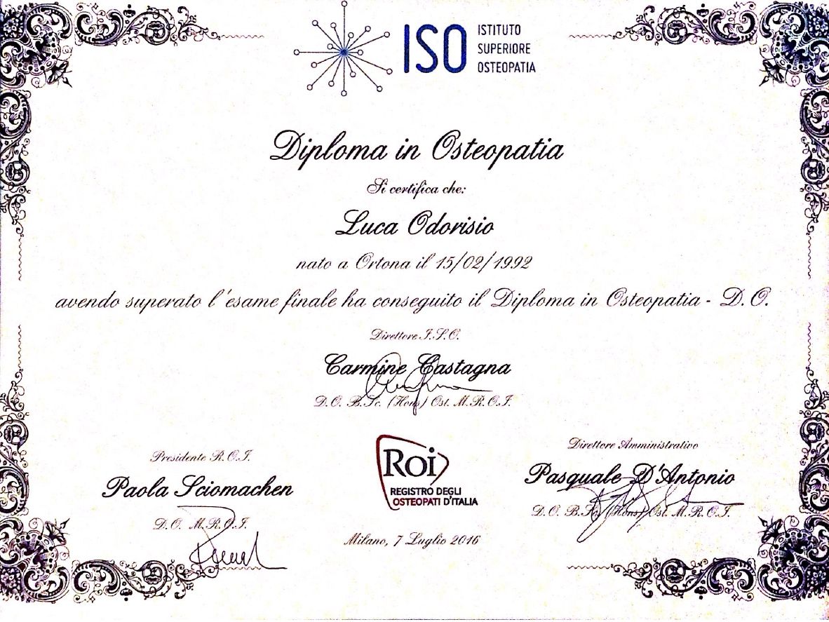 Ho conseguito il Diploma in Osteopatia presso l’Istituto Superiore di Osteopatia (ISO) di Milano al termine di un percorso quinquennale a tempo pieno.