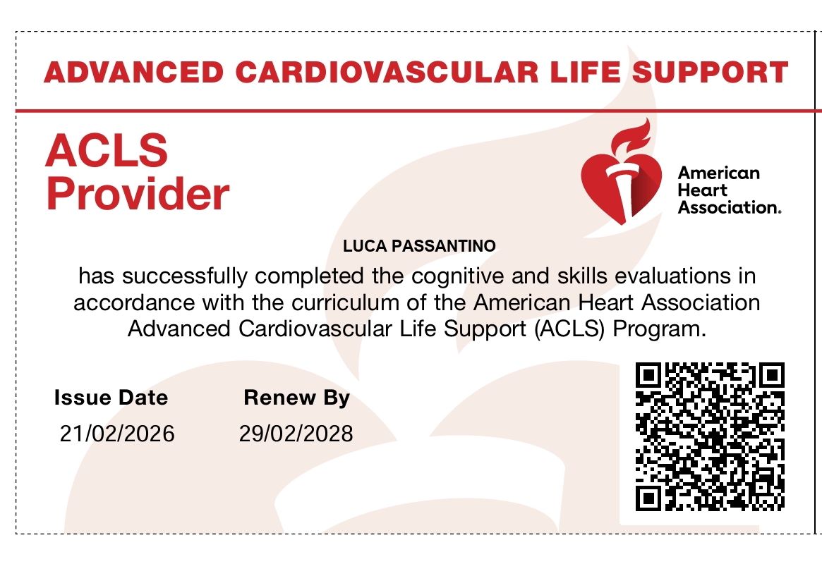 Il Dr. Luca Passantino è un medico specializzato in Malattie dell'Apparato Respiratorio che ha conseguito la laurea in Medicina e Chirurgia presso l'Università Cattolica del Sacro Cuore di Roma con il massimo dei voti e lode. Ha propria formazione specialistica presso strutture di eccellenza della capitale, con particolare focus sulla broncopneumologia e la fibrosi cistica. Durante la formazione ha maturato esperienza presso diverse unità specialistiche della capitale, come l'Unità di Medicina Respiratoria e Riabilitazione Respiratoria della clinica San Raffaele Pisana, nonché presso le Unità di Pneumologia Interventistica della Fondazione Policlinico Gemelli e dell'Ospedale San Giovanni Addolorata. Il suo percorso include anche un'esperienza presso la UOC di Pneumologia e Fibrosi cistica dell'Ospedale Pediatrico Bambino Gesù di Roma, presso il quale sta attualmente frequentando il Master di II livello in Pneumologia Pediatrica.