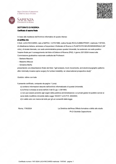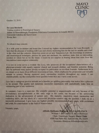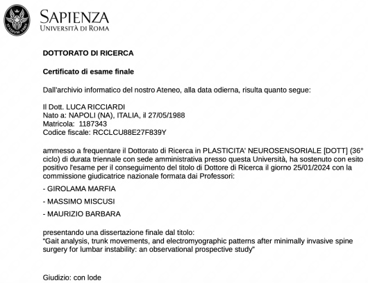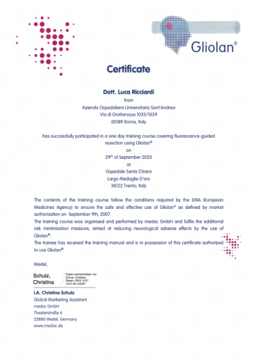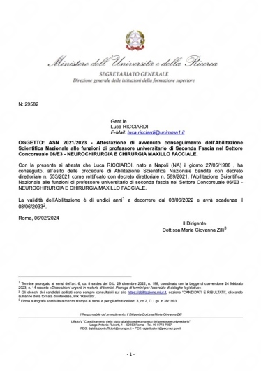 Desidero esprimere la mia più sincera gratitudine al prof Ricciardi da cui sono stata seguita per un intervento. Un professionista competente e professionale, capace di trasmettere fiducia e serenità sin dal primo incontro. La sua empatia e disponibilità nell'ascolto del paziente, spiegare con chiarezza ogni passaggio e rispondere ad ogni dubbio fanno davvero la differenza in un percorso delicato come quello neurochirurgo. Un medico che unisce alla preparazione tecnica una profonda umanità, qualità rare e preziose. A lui va tutta la mia gratitudine e riconoscenza.