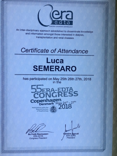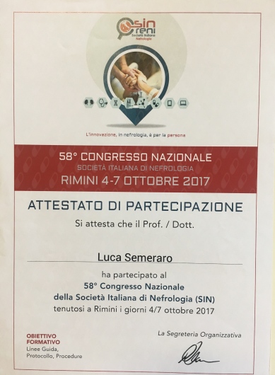 dal 1995 è membro della Società Italiana di Nefrologia (SIN) e della European Renal Association – European Dialysis and Transplant Association (ERA-EDTA);