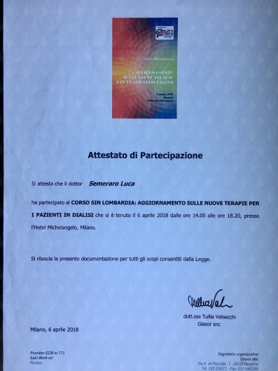 dal 01/08/2000 è Dirigente Medico presso la U.O. di Nefrologia e Dialisi dell’IRCCS Fondazione Salvatore Maugeri di Pavia;