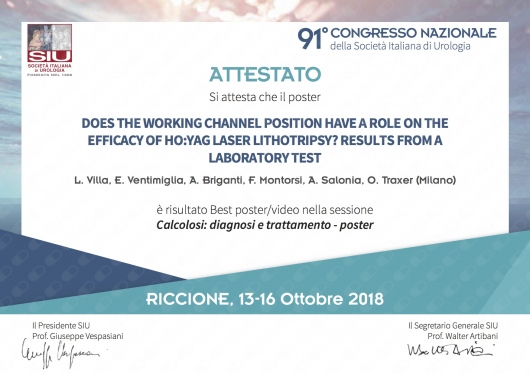 Nel mese di settembre 2015 consegue l’“Advanced Clinical Training Certification in Endourology/Stone” dall’ Endourological Society.