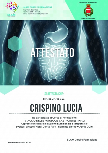 Per restare al passo coi temi ed offrire sempre il meglio per i miei pazienti, nel 2017 ho conseguito la specializzazione presso il secondo policlinico di Napoli diventando specialista in Scienza dell'Alimentazione.