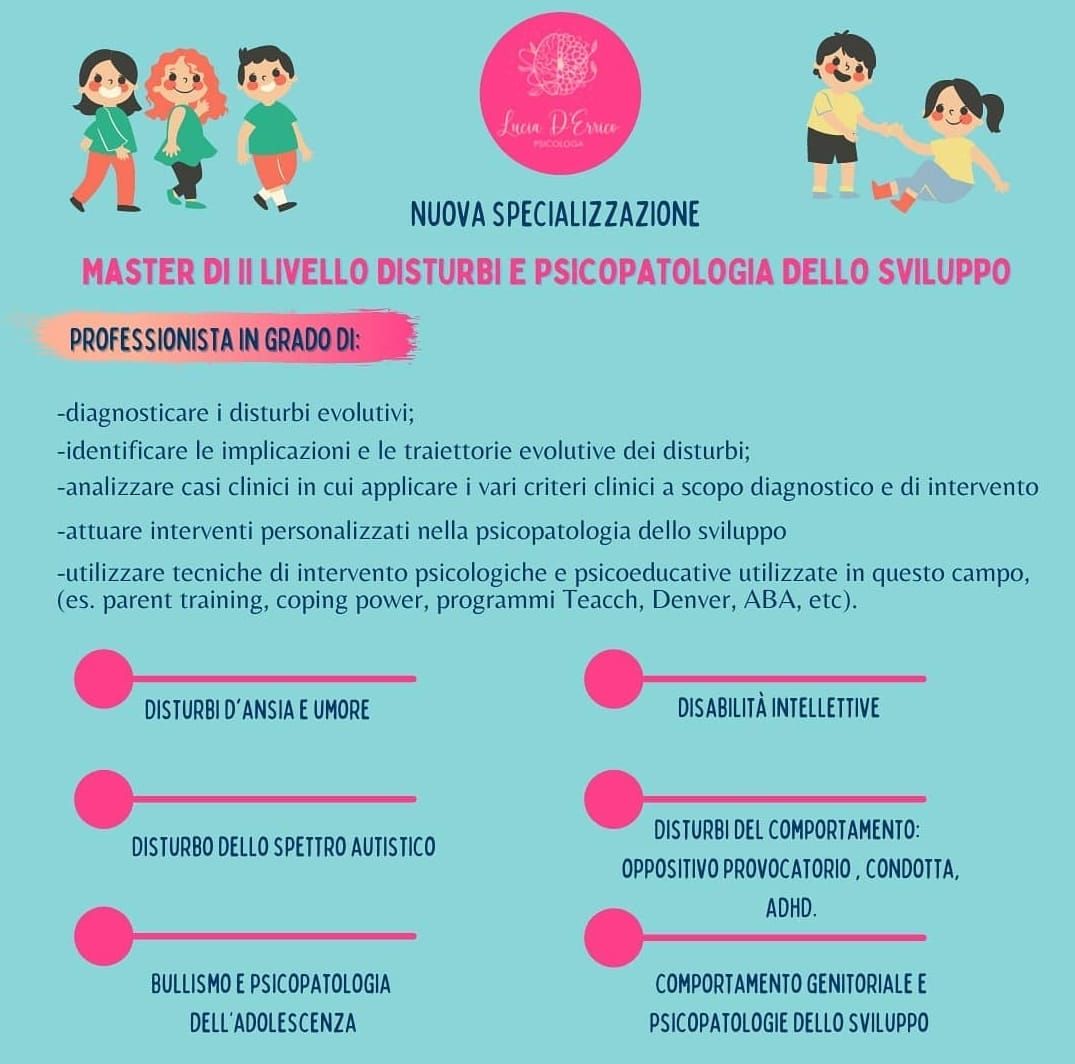 Con un approccio empatico, attento e personalizzato, mi occupo non solo di diagnosi e trattamento dei disturbi evolutivi (come DSA, ADHD, disturbi del comportamento ed emotivi), ma anche di prevenzione del disagio psicologico e promozione di competenze e risorse personali. Utilizzo strumenti e tecniche mirate, sempre adeguate all’età e ai bisogni dei miei piccoli pazienti.