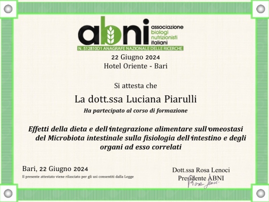 Ho effettuato la prima visita nutrizionale con la Dott.ssa Piarulli qualche giorno fa ed oggi ho ritirato il mio piano nutrizionale personalizzato. La Dott.ssa è stata molto cortese, disponibile e cordiale, attenta alle mie esigenze.