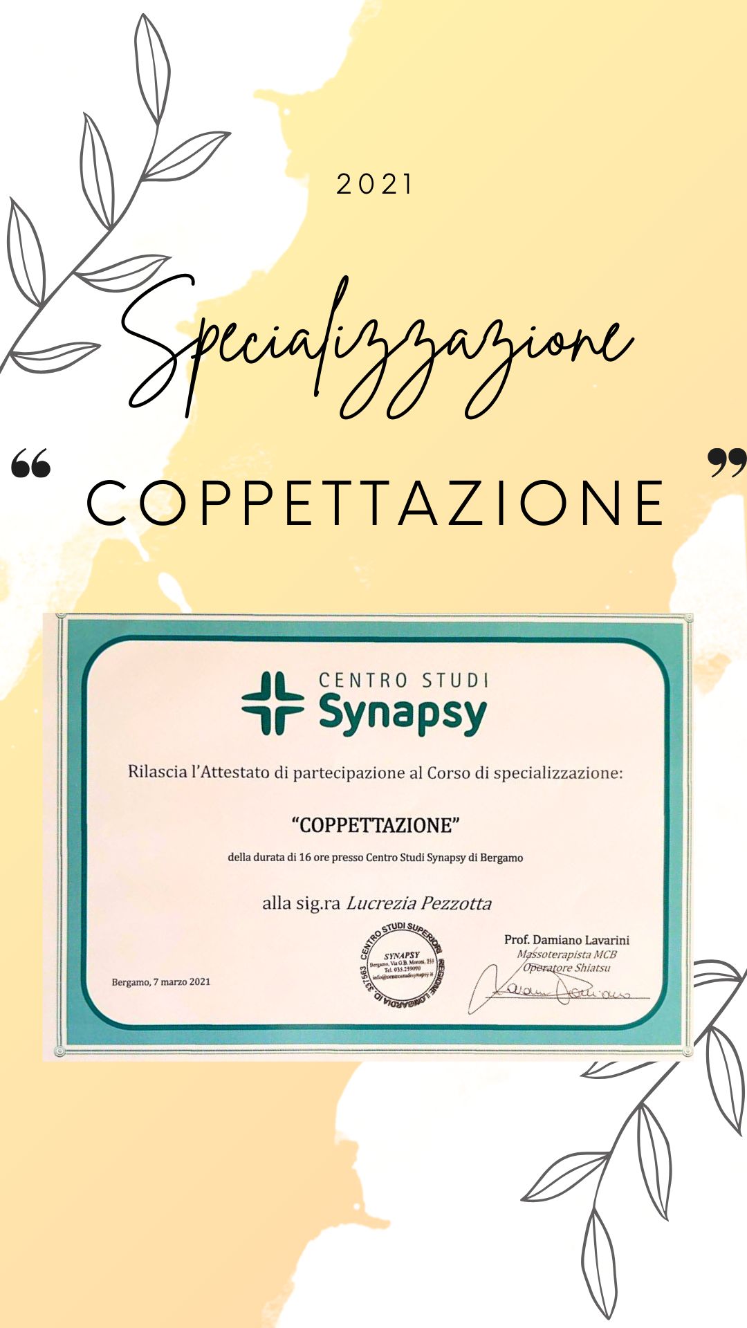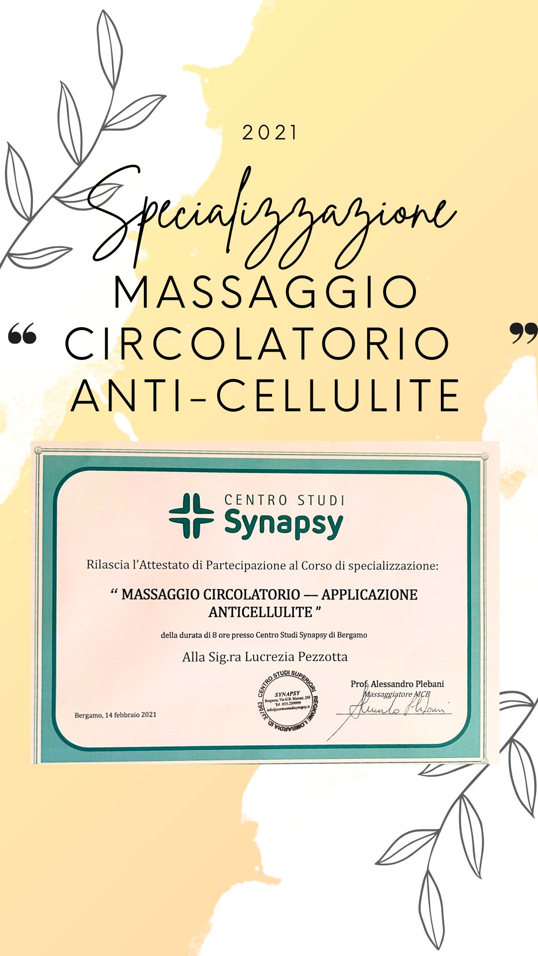 Ricevo su appuntamento come Massoterapista e Chinesiologa, con un approccio personalizzato basato su una valutazione individuale e sulle specifiche esigenze della persona.