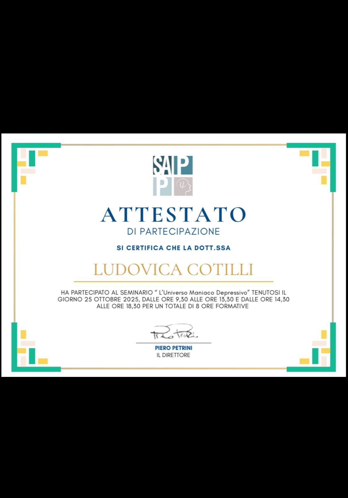 Ho collaborato con la Dottoressa Cotilli in varie occasioni. Il suo entusiasmo diventa capacità di accogliere tutti i tipi di sofferenza, senza perdere mai il valore della persona.