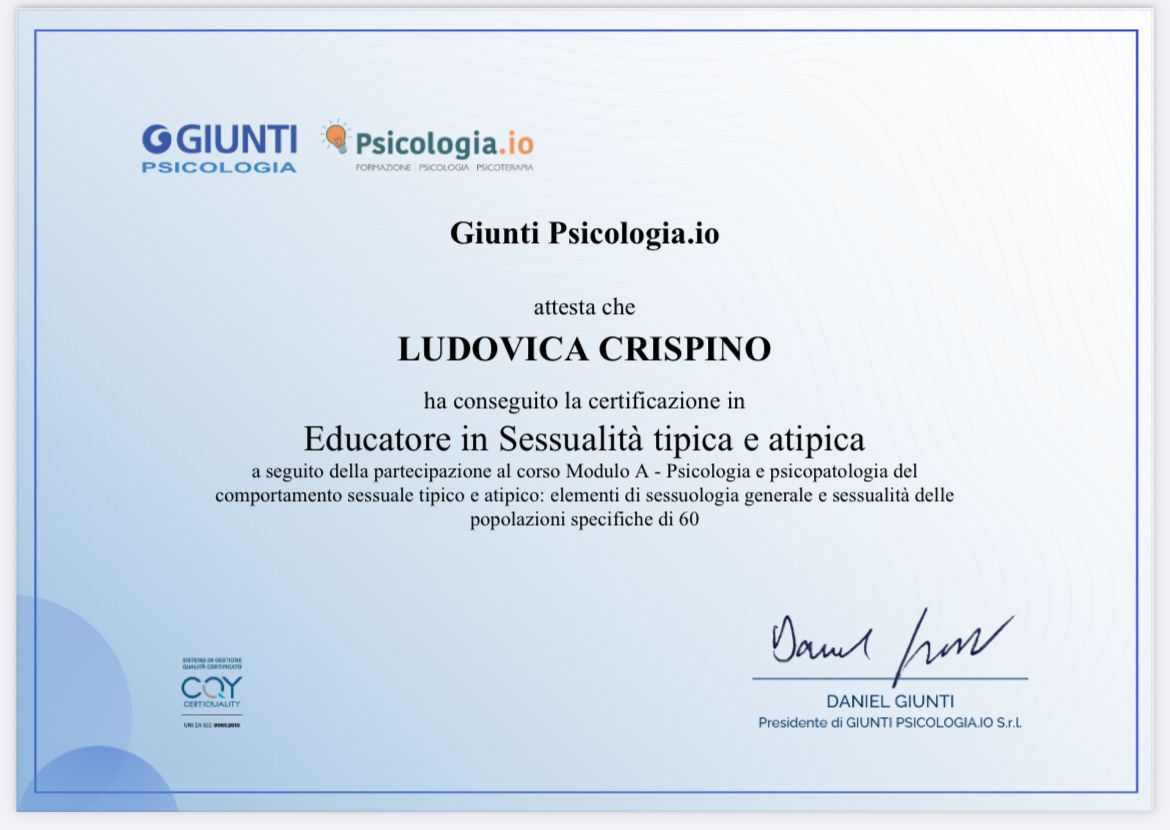 Mi occupo anche di tematiche legate alla sessualità, un ambito che troppo spesso viene vissuto con vergogna o silenzio, ma che invece merita spazio e ascolto.