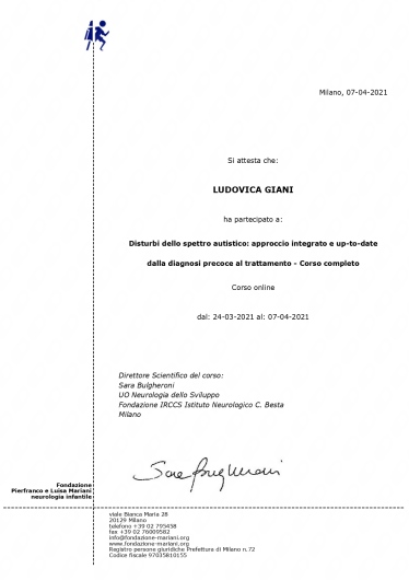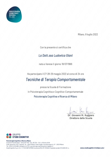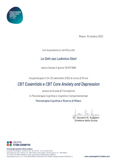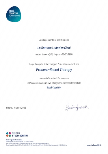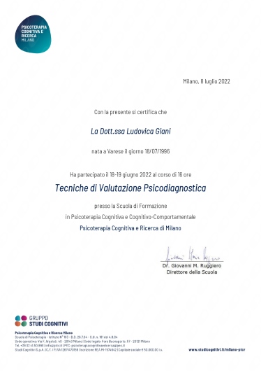 Sono la Dott.ssa Ludovica Giani, psicologa e psicoterapeuta ad orientamento cognitivo-comportamentale specializzata nella psicopatologia dell’età evolutiva. Mi occupo principalmente di valutazione e trattamento di disturbi d'ansia, disturbi depressivi, disturbi ossessivi-compulsivi, ADHD, disturbi dello spettro autistico, disturbi di personalità e, più in generale, di problematiche emotive, relazionali e comportamentali di bambini, adolescenti, giovani adulti e adulti. Ricevo privatamente in studio a Gallarate (VA) e a Paderno Dugnano (MI), dove offro sedute di valutazioni psicodiagnostiche, colloqui clinici di sostegno psicologico e sedute di psicoterapia. Ricevo, inoltre, anche da remoto. Ho conseguito il titolo di Laurea Magistrale in Psicologia Clinica presso la Sigmund Freud University di Milano con votazione finale di 110/110 e Lode. Ho proseguito la mia formazione con un Dottorato di Ricerca presso la Sigmund Freud University di Vienna, grazie ad una borsa di studio vinta per merito, con un progetto di ricerca in collaborazione con l’Ospedale Policlinico di Milano. Ho conseguito il titolo di Psicoterapeuta presso la Scuola di Specializzazione in Psicoterapia Cognitivo Comportamentale "Studi Cognitivi" di Milano. Ho maturato esperienza clinica presso l’IRCCS E. Medea – La Nostra Famiglia di Bosisio Parini, specializzato nei Disturbi dello Spettro Autistico, il reparto di Neuropsichiatria Infantile dell'Ospedale Policlinico di Milano dove mi sono occupata di valutazioni diagnostiche e progettazione di interventi riabilitativi per bambini e adolescenti, e il reparto di Psichiatria dell'Ospedale L. Sacco di Milano, dove ho affinato le competenze di valutazione e trattamento delle psicopatologie dell'età adulta. Ho lavorato anche come psicologa in progetti psicoeducativi nelle scuole primarie e secondarie per promuovere l’incremento delle capacità di regolazione emotiva. Attualmente lavoro presso le Cliniche Italiane di Psicoterapia – Centro Età Evolutiva di Milano e svolgo attività di libera professione in studio privato. Sono, inoltre, Docente Universitario in Psicologia dello Sviluppo e ricercatrice post-doc presso il Child & Youth Lab, l' Artificial Intelligence and Data Analysis Lab, e l' Innovation in Psychoterapy Efficacy Research Lab della SFU-Milano.