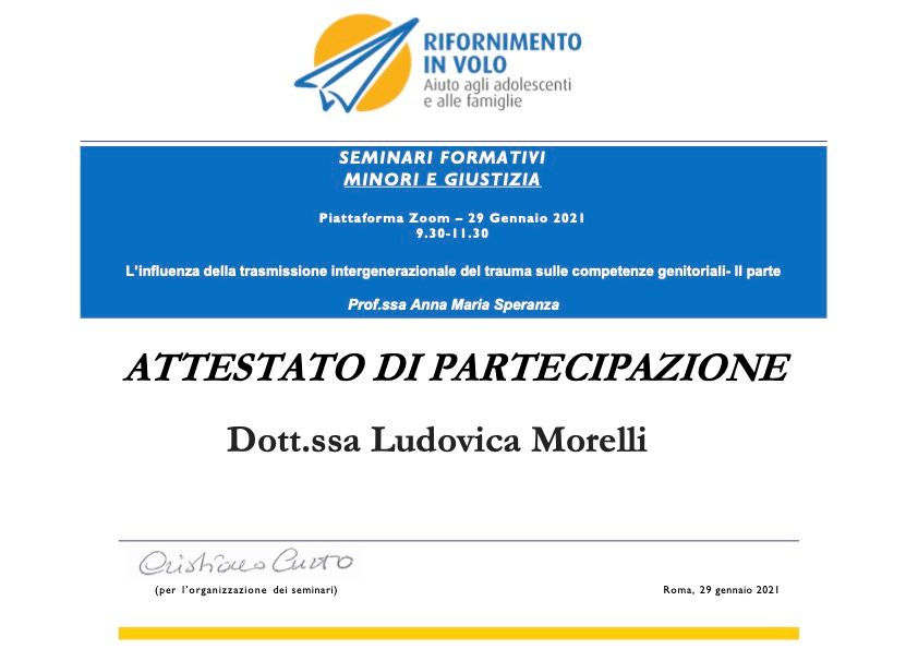 Sono una psicologa iscritta all'Ordine degli Psicologi del Lazio, laureata in Psicopatologia Dinamica dello Sviluppo e specializzanda in Psicoterapia sistemico-relazionale, presso l'Accademia di Psicoterapia della Famiglia di Roma.