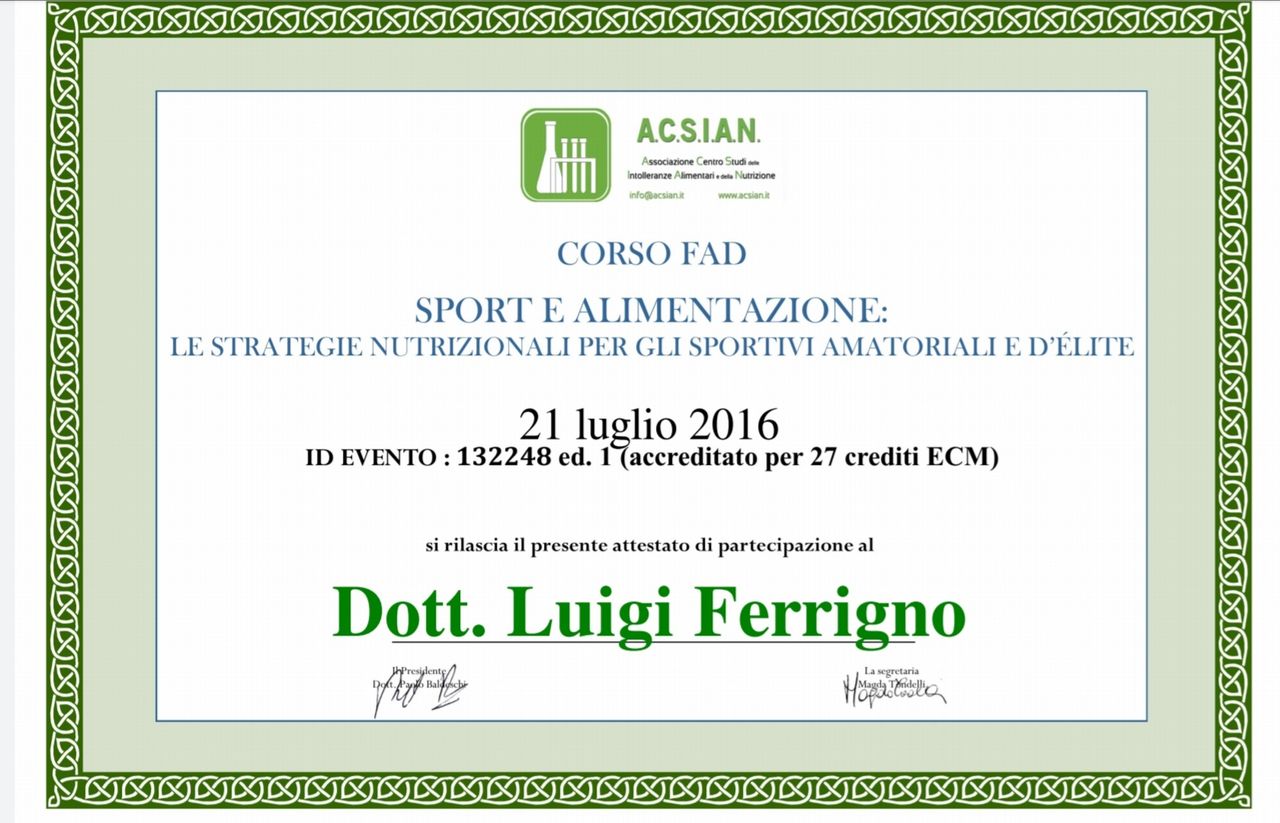 Le mie conoscenze in materia sono molto varie, iniziate vivendo sin da piccolo in un ristorante, provate ed approfondite durante la mia carriera sportiva. Studiate e perfezionate sia all'Università e nei var tirocini presso aziende alimentari e in una clinica ospedaliera, sia in diversi corsi di formazione e perfezionamento specifici ai miei interessi. Dopo aver collaborato con il servizio di diabetologia dell'Istituto Clinico San Rocco di Ome (BS) ed aver seguito per diversi mesi un gruppo di diabetici non complianti alle prescrizioni dietetiche , ho conseguito la Laurea Magistrale in Alimentazione e Nutrizione Umana presso l'Università degli Studi di Milano. Successivamente ho ottenuto l'abilitazione all'esercizio della professione di Biologo Nutrizionista presso l'Università dell'Insubria di Varese iscrivendomi all'Ordine Nazionale dei Biologi.