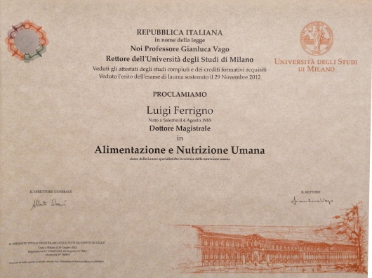 Le mie conoscenze in materia sono molto varie, iniziate vivendo sin da piccolo in un ristorante, provate ed approfondite durante la mia carriera sportiva. Studiate e perfezionate sia all'Università e nei var tirocini presso aziende alimentari e in una clinica ospedaliera, sia in diversi corsi di formazione e perfezionamento specifici ai miei interessi. Dopo aver collaborato con il servizio di diabetologia dell'Istituto Clinico San Rocco di Ome (BS) ed aver seguito per diversi mesi un gruppo di diabetici non complianti alle prescrizioni dietetiche , ho conseguito la Laurea Magistrale in Alimentazione e Nutrizione Umana presso l'Università degli Studi di Milano. Successivamente ho ottenuto l'abilitazione all'esercizio della professione di Biologo Nutrizionista presso l'Università dell'Insubria di Varese iscrivendomi all'Ordine Nazionale dei Biologi.