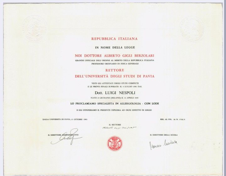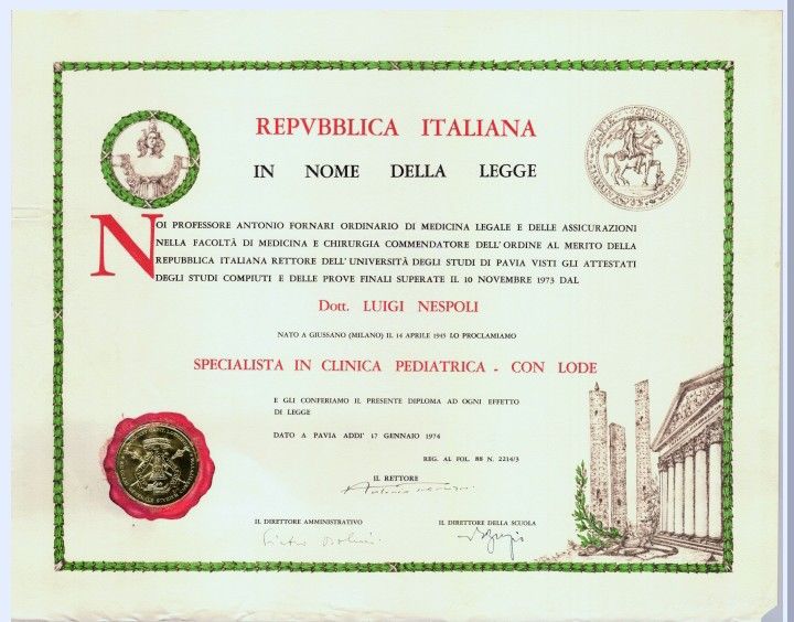 Curriculum accademico:1970, Laurea con lode in Medicina E Chirurgia presso la Università di Pavia. Specialità conseguite: 1973, Clinica Pediatrica con il prof. G. Roberto Burgio, 1977, Ematologia Clinica e di Laboratorio col prof. Edoardo Storti, 1983, Allergologia con il prof. Francesco Candura. Professore Associato di Pediatria nel 1986, Professore Ordinario di Pediatria dal 1996 fino al 2015, uscita di ruolo. Dal 2016 Professore Onorario per decreto del ministro Stefania Giannini.