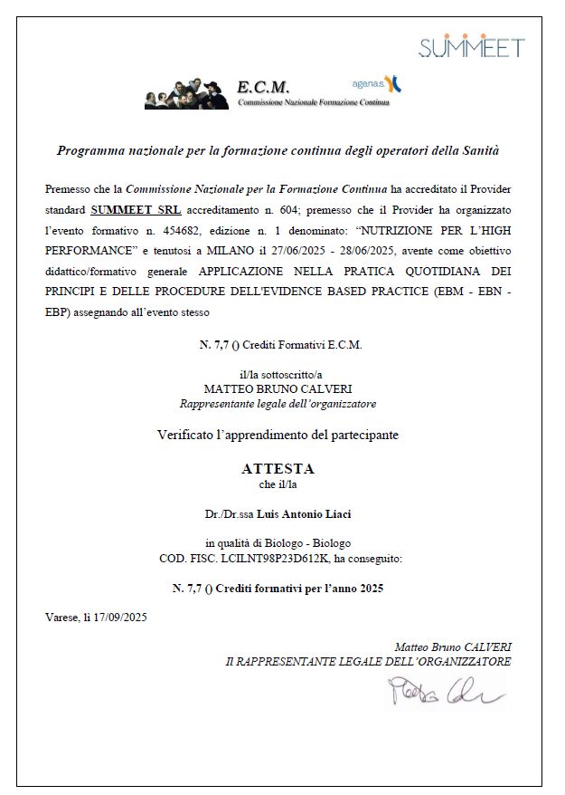 Parallelamente allo studio, ho maturato un’importante esperienza pratica in un centro di nutrizione clinica e sportiva, seguendo atleti professionisti, tra cui giocatori di Serie A, olimpionici e piloti di MotoGP.
