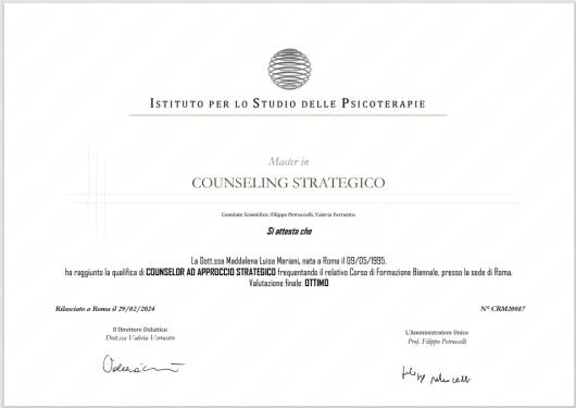 Ho incontrato la Dott.ssa Mariani durante un periodo difficile della mia vita e, nonostante all'inizio avessi dei dubbi nell'iniziare un percorso, mi sono dovuto ricredere. La Dott.ssa ha avuto la capacità di prendere il caos che avevo dentro di me e organizzarlo in un ordine tale da far sì che quel caos avesse un senso.