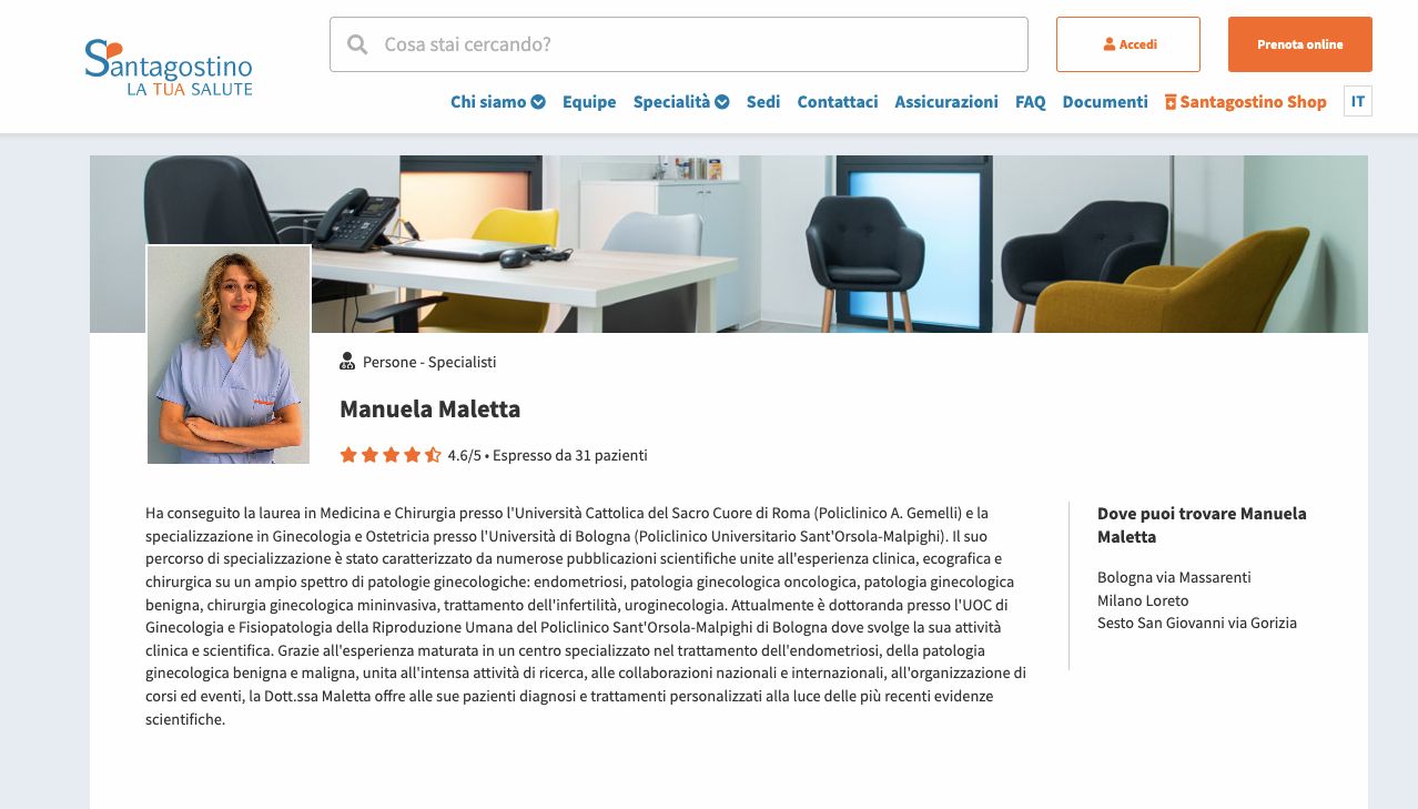 Per prenotare una visita puoi prenotare direttamente accedendo a questa pagina web https://www.santagostino.it/it/persone/manuela-maletta oppure puoi rivolgerti ai seguenti numeri: