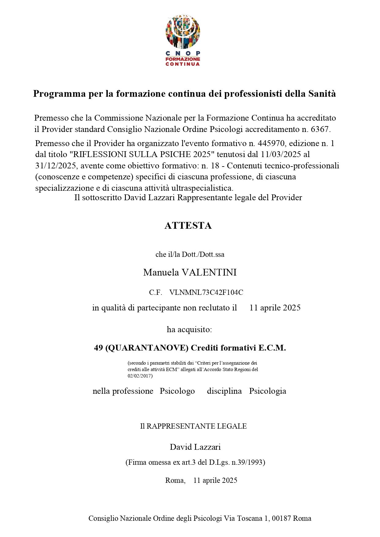 Sono la Dr.ssa Manuela Valentini, psicologa.