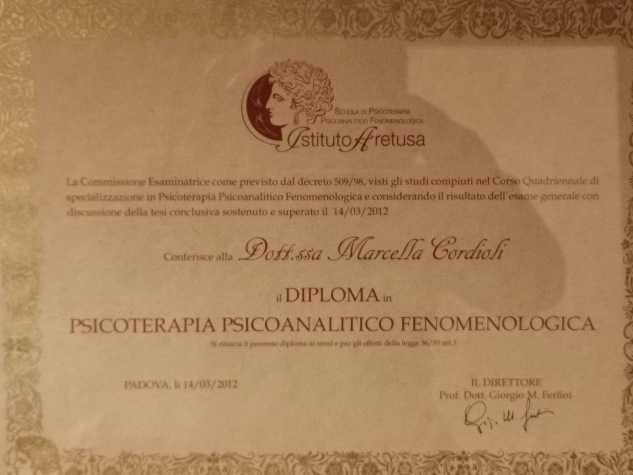Sono la Dott. ssa Marcella Cordioli Psicologa e Psicoterapeuta, specializzata in Psicoterapia Psicoanalitica Fenomenologica.