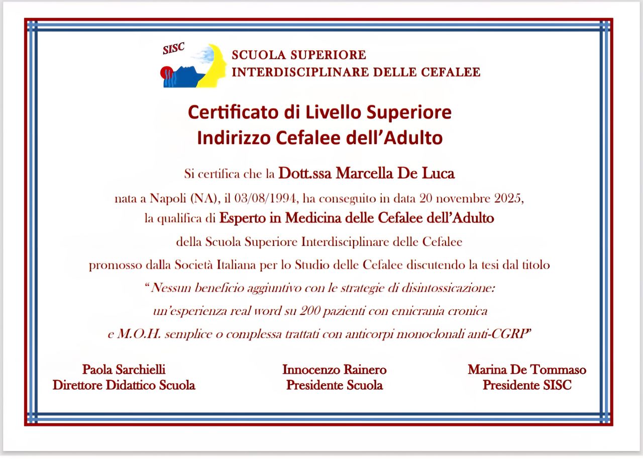 La dottoressa De Luca è una neurologa estremamente competente, attenta e umana. Fin dal primo incontro mi ha ascoltata con grande disponibilità, spiegandomi tutto in modo chiaro e rassicurante. Ho apprezzato molto la sua cura per la persona oltre che per il problema che avevo. È una professionista scrupolosa, aggiornata e capace di mettere il paziente a proprio agio. La consiglio vivamente a tutti.