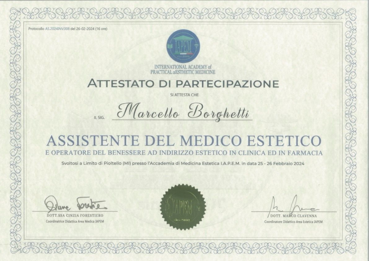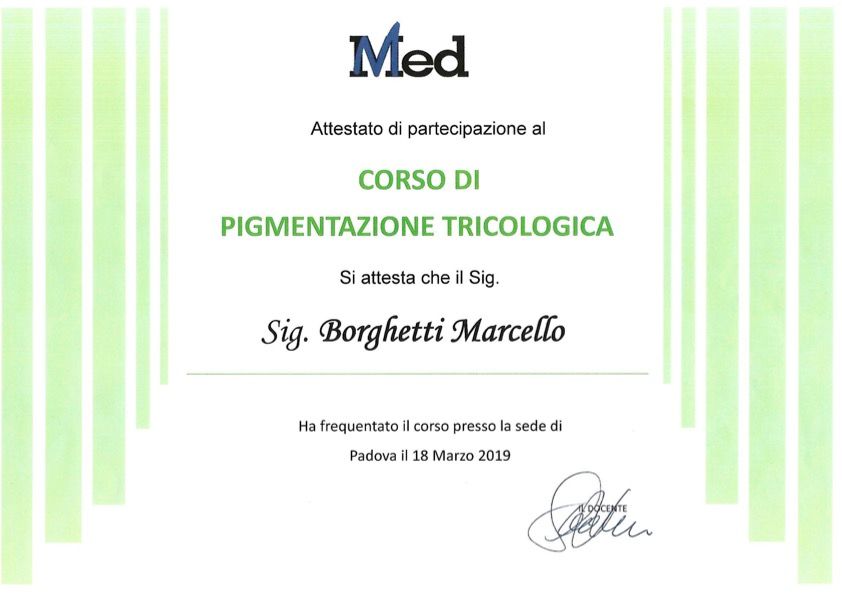Marcello Borghetti è specialista in Tricopigmentazione con abilitazione igienico-sanitaria accreditato dalla Regione Lombardia.