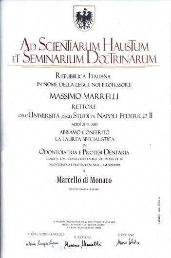 Mi sono laureato in Odontoiatria e Protesi Dentaria nel 2013 presso l'Università degli Studi di Napoli Federico II. Ho perfezionato la mia formazione in implantologia presso la stessa università, sotto la guida del professor Ramaglia.