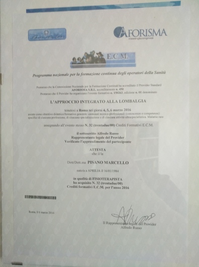 Ho fatto la prima seduta osteopatica e ne farò altre.• Studio di Fisioterapia ed Osteopatia Dr.Marcello Pisano • prima visita osteopatica •
