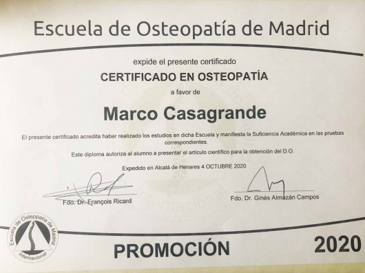 Ho conseguito il titolo di Osteopata presso la scuola internazionale EOM.