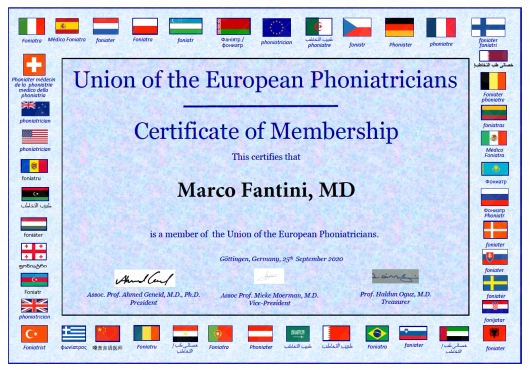 Formazione in fonochirurgia presso il Voice Center della SC ORL dell’Ospedale M. Bufalini di Cesena (Direttore: Dott. Massimo Magnani, responsabile: Dott. Andrea Ricci Maccarini).