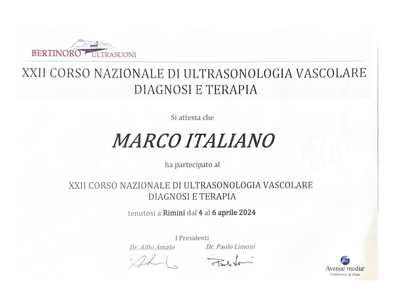Ecografista vascolare, nonché esperto nella gestione della problematica trombotica venosa superficiale e profonda, dell’insufficienza venosa cronica, della sindrome post-trombotica e dell’arteriopatia obliterante degli arti inferiori, ho affinato la mia tecnica seguendo corsi di formazione e di aggiornamento riguardanti le tematiche ecografiche e internistiche, organizzati dai più autorevoli esperti in ambito nazionale e internazionale.