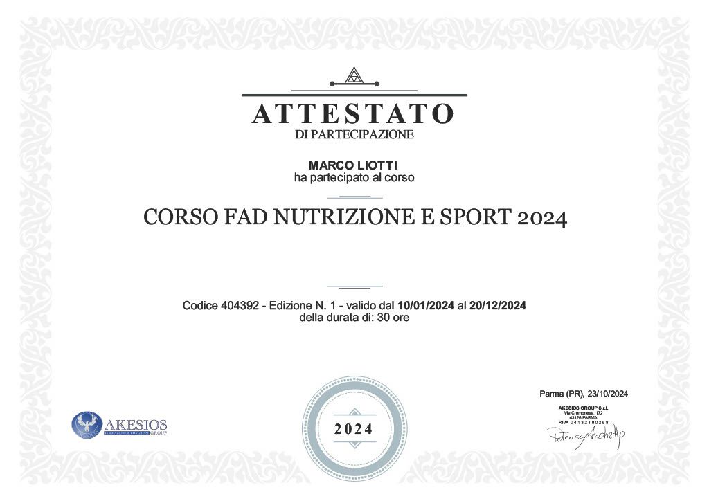 Dr.Marco Liotti Dietista Nutrizionista Clinico e Sportivo