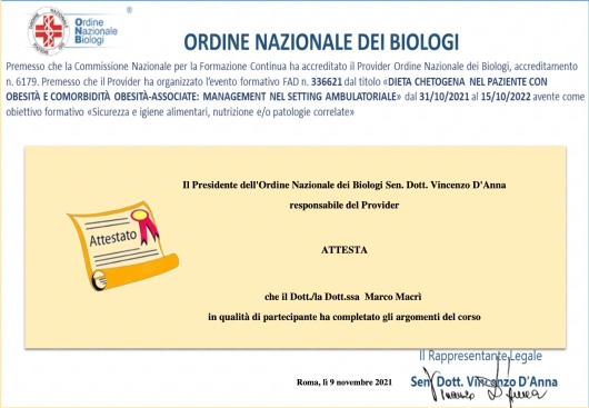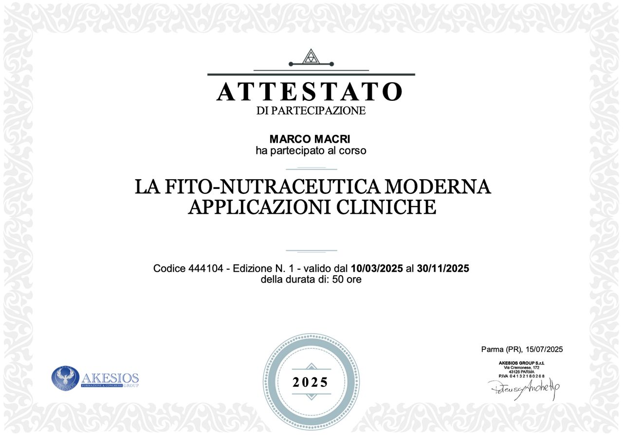 Ho avuto un’ottima esperienza con il biologo nutrizionista Marco Macri. Fin dal primo incontro si è dimostrato molto professionale, empatico e attento alle mie esigenze personali. Il piano alimentare è stato studiato su misura, equilibrato, senza rinunce eccessive, un piano alimentare che si adatta alla vita di tutti i giorni. Grazie al suo supporto ho imparato a mangiare meglio e a sentirmi più in forma, soprattutto senza stress. Super consigliato!