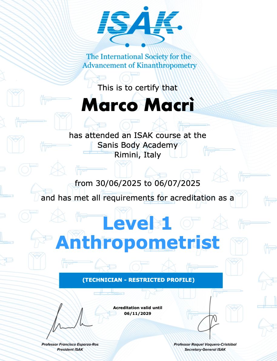 • Analisi antropometrica completa con protocollo ISAK.
