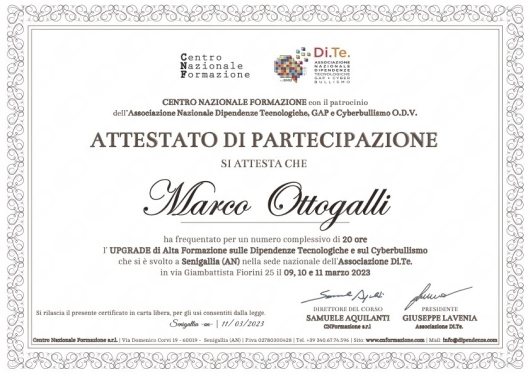 Devo ringraziare il Dott. Marco Ottogalli per la professionalità con cui svolge il suo lavoro. Ho iniziato da poco un percorso con lui che mi sta permettendo di capire molto su di me e mi sta permettendo di relazionare sempre meglio con le altre persone. Mi dà un continuo sprono per la mia crescita personale, ascoltandomi e dandomi il suo punto di vista.