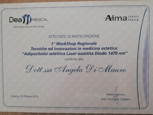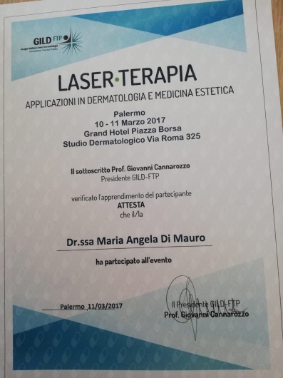 Ho seguito un corso teorico-pratico in medicina estetica nel 1998. Negli anni mi sono specializzata nell'utilizzo di laser medici per trattamenti dermo-estetici ed ho acquisito la tecnica dermoscopica per la prevenzione e lo studio del melanoma e dei tumori cutanei.