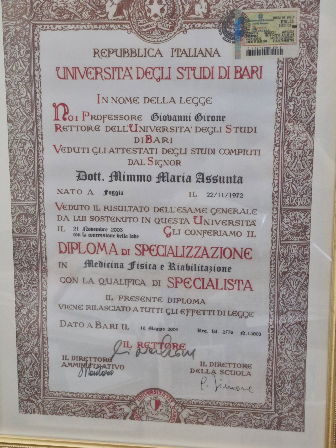 Medico Chirurgo specialista Fisiatra