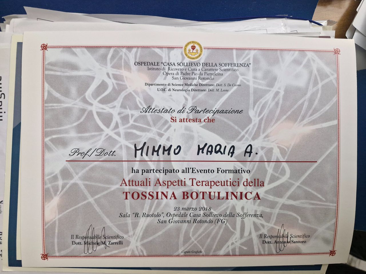 Dopo anni di ricerca di un dottore che mette in evidenza le mie tante patologie , fra visite per il riconoscimento di invalidità tutte fallite , finalmente ho trovato il dottore giusto che ha soddisfatto ciò che chiedevo .