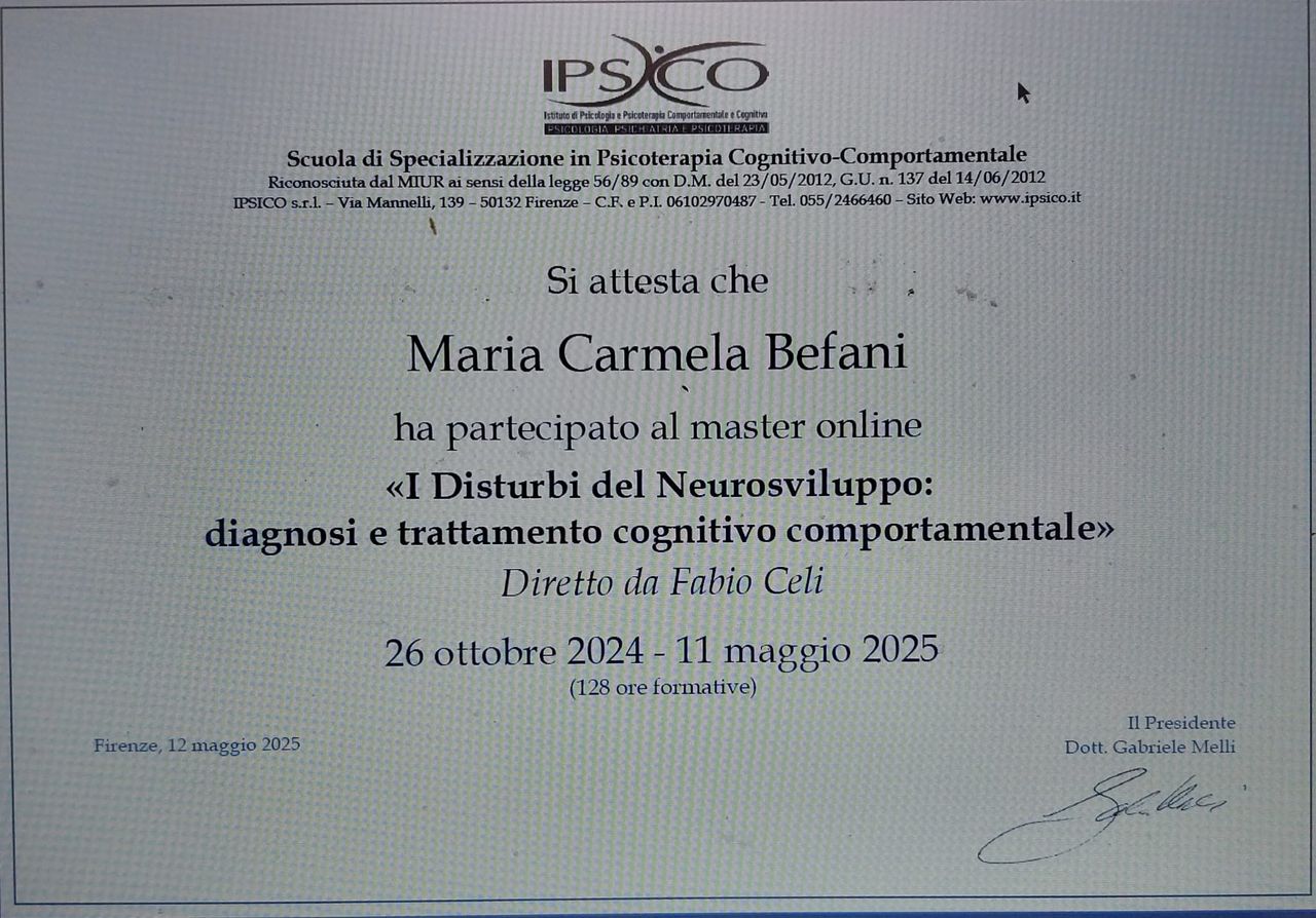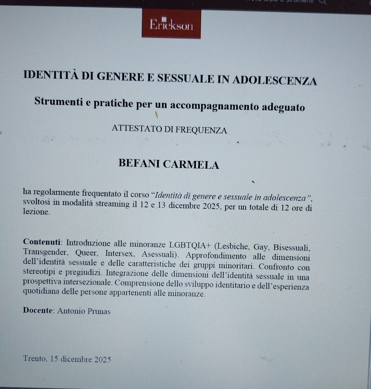 La mia formazione è continua: negli anni ho dedicato molto spazio alle problematiche connesse al neurosviluppo, alla genitorialità, all'adolescenza e la preadolescenza.