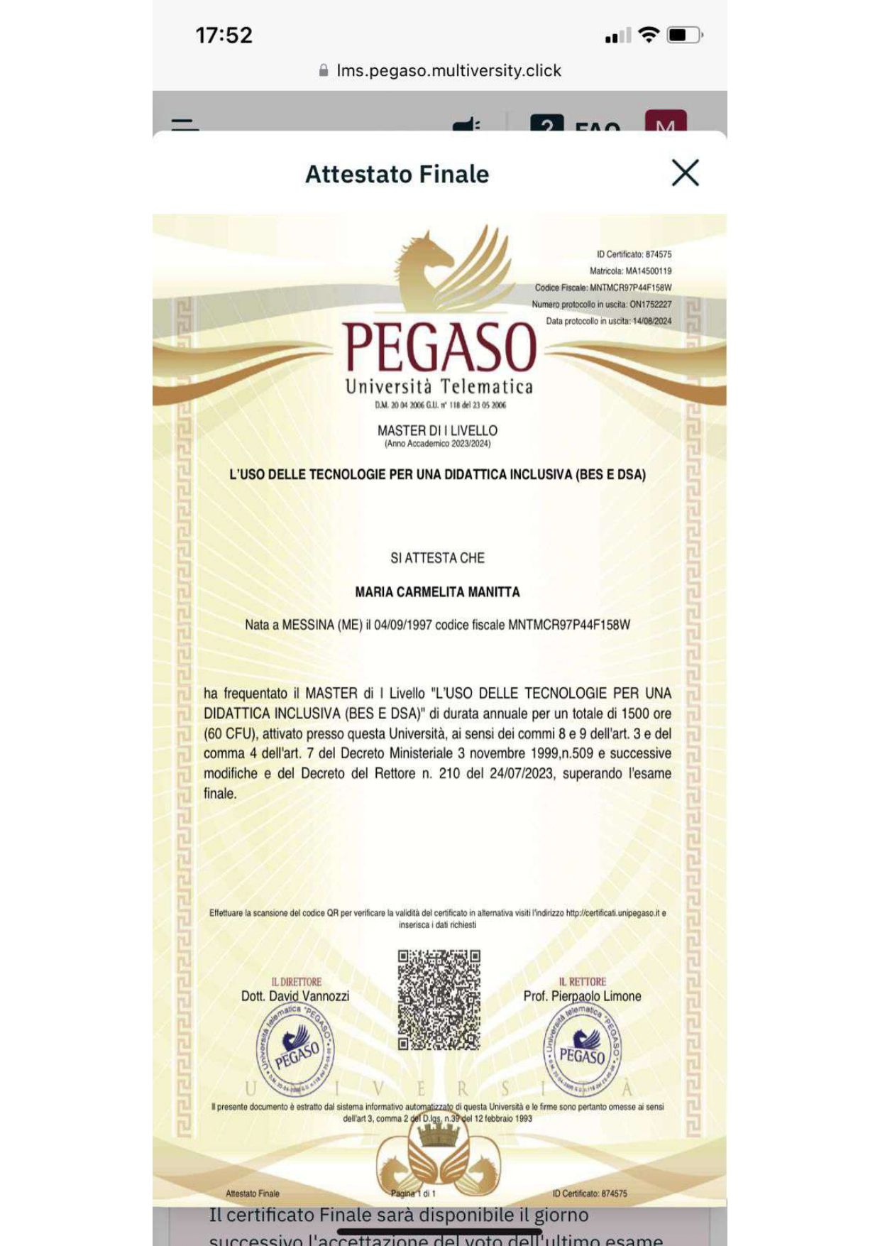 La dottoressa è una persona molto competente e attenta professionalmente. La sua capacità si ascolto ed empatia mi hanno accompagnato e supportato.Ho intrapreso il percorso online in un momento molto difficile della mia vita, ma grazie all'impegno della dottoressa Maria Carmelita sono riuscita ad individuare le mie potenzialità e a trasformare le mie debolezze in punti di forza.