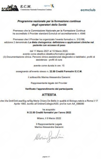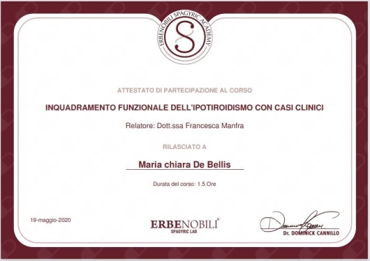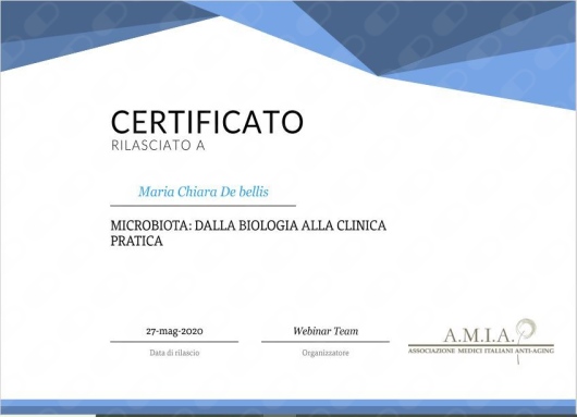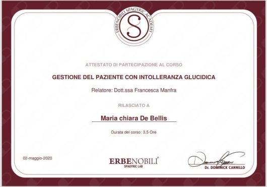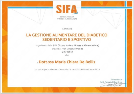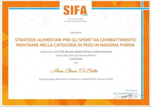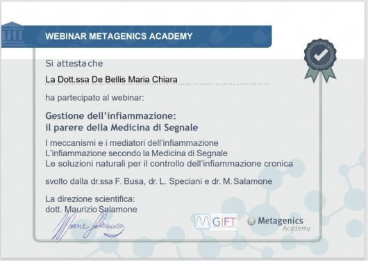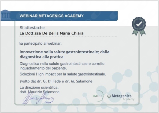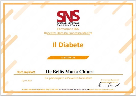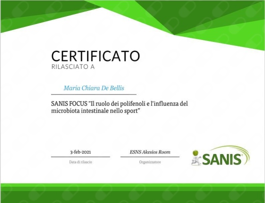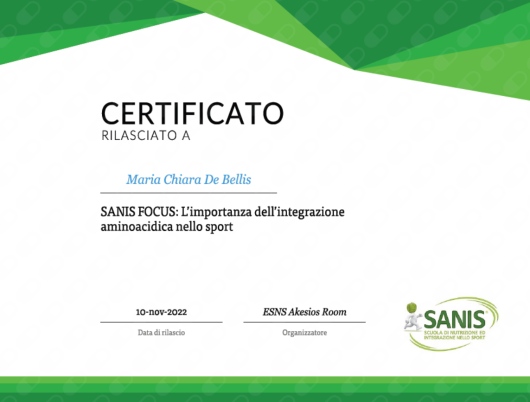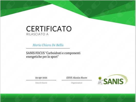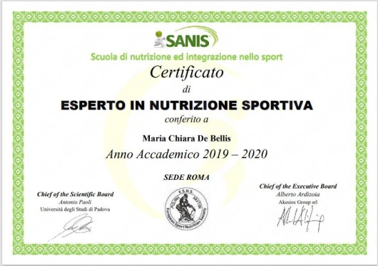 Terminati gli studi universitari ho deciso di perfezionarmi con il Corso in Nutrizione Umana della Scuola di Nutrizione Salernitana e in nutrizione sportiva presso il SANIS.